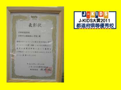 この度,第9回全日本小学校ホームページ大賞(通称J−KIDS大賞2011)「都道府県等優秀校」に選出され,本日表彰状が送られてきました。