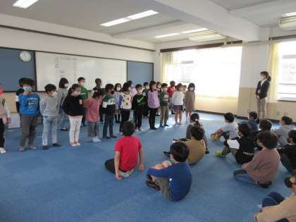 日直さん2人が声をかけに行き、2年生が来てくれました。