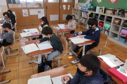 国語科の学習です。今日は、感想を書き方について学習しました。