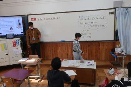 算数科の学習です。今日は平均の計算を活用して、自分の歩幅について考えました。