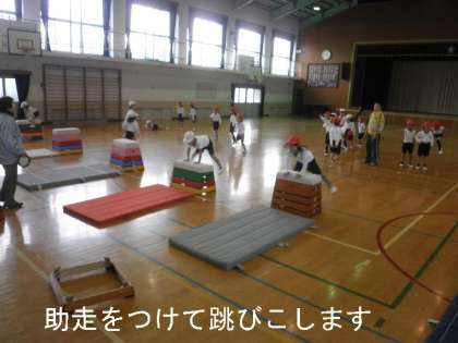 1年生の時期には,まだ跳べる子と跳べない子の差はあまりないようです。これからの一人ひとりの取組方で高い跳び箱を跳べるようになっていきます。中学年,高学年で差がつかないようにがんばってほしいですね。