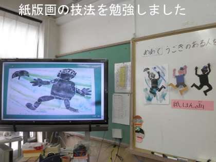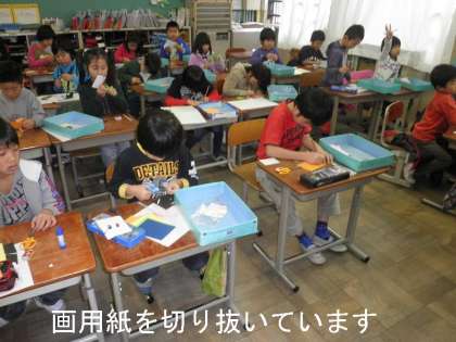 動きのある版画に仕上げるために,目や鼻などにも動きがあることに注意し,画用紙を切っていきました。