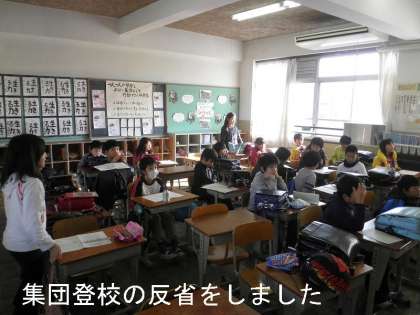 寒くなってきてから,登校時間が守れず集団登校ができない班が目立ってきていたので,担当の先生から厳しく注意される場面もありました。