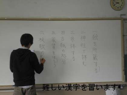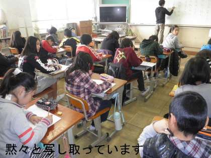 1校時に国語で漢字の書き取りをしました。先生が書いていく漢字は、読めるのですが,いざ書き取りになると難しいようです。黒板やドリルを見ながら,黙々と書き取っていました。