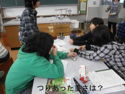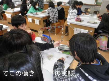 隣のクラスの6年生は,理科室で「てこのはたらき」の実験をしていました。