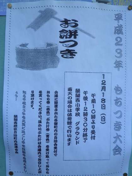 明日18日(日)10時より,毎年恒例の自治町内会連合会主催の「年末もちつき大会」が本校運動場で実施されます。