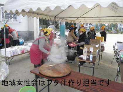 今日は,お餅だけでなく,ブタ汁も作っていただいています。