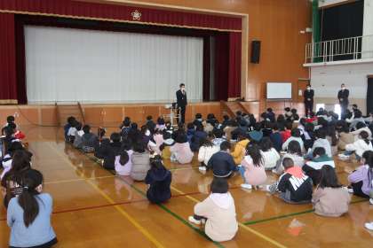 2学期終業式です。今年一番の冷え込みで、朝の体育館も凍えるような寒さでしたが、子どもたちは聞く姿勢を考えながら、一生懸命に話を聞いていました。凛とした姿が輝いていました。
