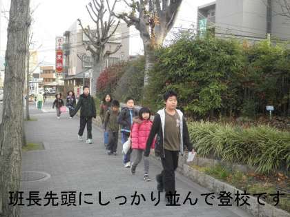 その後,各登校班が,時間を守ってきちんと登校できるようになっています。特に班長さんが意識してリーダーシップを発揮してくれているようです。とてもうれしく思っています。このまま,冬休みまで続けてほしいものです。