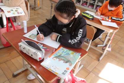国語科の学習です。地図を見ながら場面の様子を考えて、文章の組み立てを工夫しながら物語をつくりました。