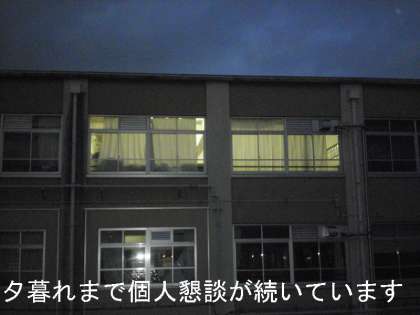 個人懇談会第3日目です。今日も遅くまで各教室に電気がついています。