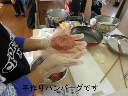 昨日の1組に続いて,今日は2組が調理実習をしました。ハンバーグにみそ汁,温野菜,・・・など,楽しい実習です。