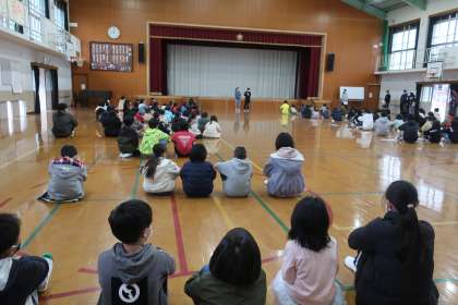 月曜日に児童集会が行われました。各委員会から、これまでの取組や今後のイベントの紹介の発表がありました。今回は、委員長の6年生だけではなく、副委員長の5年生が発表する場面がたくさん見られました。