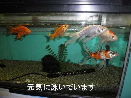 昨日(元日)に職員室前の水槽で飼っている金魚「コメット」が1匹死んだことをお伝えしましたが,残った金魚たちは,元気に泳いでいます。餌もよく食べています。水質・水温も再点検してOKです。