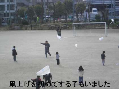 ゴミ袋で作った簡単な凧でしたが,よく風に乗ってあがりました。