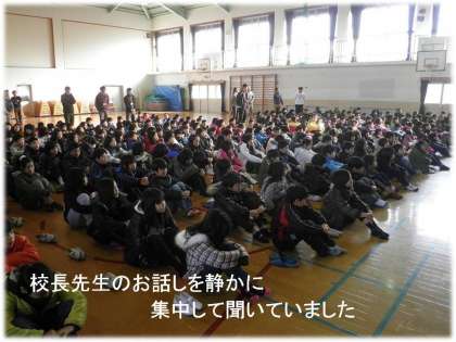 体育館は底冷えして大変寒かったですが,1校時に新年(1月)最初の朝会がありました。