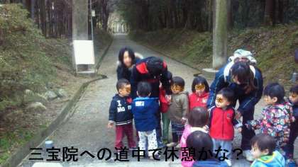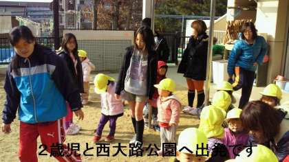 0歳児は園庭遊び,1歳児は三宝院へ,2歳児は西大路公園に,3歳児は折戸公園に,4歳児は園内で凧つくり,そして,今年入学してくれる5歳児は三宝院へ,それぞれ,担当の児童が一緒に出かけたり,遊んだりして交流しました。