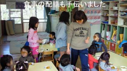 お昼前に園児たちの給食のお手伝いをしてさよならしました。