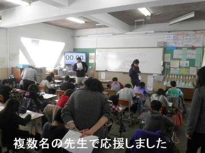 なんと,3の2の教室には,時間の空いている7人の先生が入り,プリント学習をしている子どもたちに,アドバイスを送っていました。