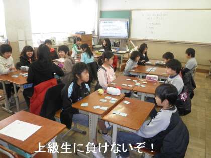 中には,読み札(上の句)を詠みあげただけで,取り札(下の句)を素早く取る子どもたちもいました。