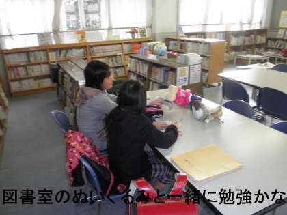 宿題が早く終わった子どもたちは,すっかりきれいになった図書室で気に行った本をさがして読んでいました。