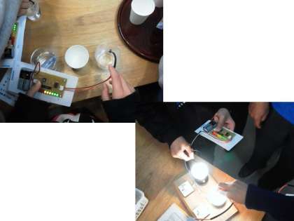 子どもたちは,完成した温度計を使って,いろいろなものの温度を測定しました。