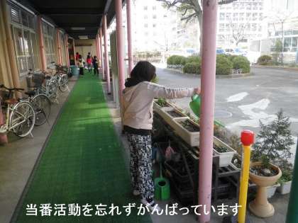 つい当番を忘れてしまう子どももいますが,中には,毎回欠かすことなくがんばってくれている子どももいます。思わずご苦労様と声をかけたくなります。