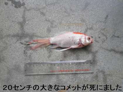 今朝,職員室前の水槽で飼っている金魚(コメット)が死んでいました。冬休み中にも1匹死んだことはお知らせしていますが,原因がわかりません。水温,水質,食欲,えさの種類等,問題ないのですが??