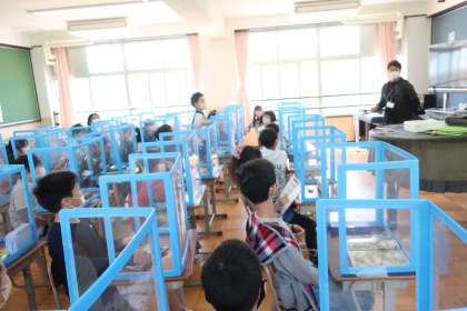 5年生になってはじめての音楽の学習です。授業のSTARTは曲名あてクイズ!スクールサポーターの先生が奏でるピアノのメロディーをじっくり聴きながら、想像を膨らませてこたえていました。