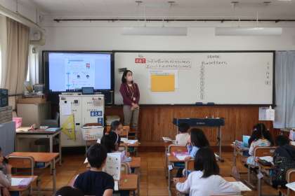 いよいよ算数も本格的に始まります。今日は、ノートの書き方や学習の進め方について確認しました。めあての書き方、マス目の活用の方法等々、一つ一つ確かめながら真剣に取り組んでいました。