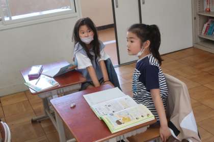 算数科の学習です。2年生でマスターした九九。今日は、九九の表を使った数あてゲームをしました。ルールは、「九九を知らない2年生にどう説明することができるか。」九九の表のきまりに着目して,かくれた数の見付け方を考え,グループで説明し合いました。グループでの交流を通して,新しい発見があったようです。