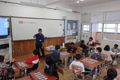 今日は、子どもたちとミニ百人一首大会。上の句・下の句の意味や札の取り方を知り、いざ競技へ!和気あいあいと盛り上がっていました。