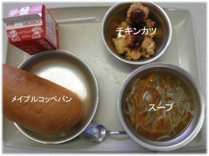 「メイプルコッペパン」(黒糖コッペパンから変更させました)「スープ」「チキンカツ」でした。