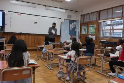 鉛筆の持ち方の学習です。一度間違った癖がついてしまうと、なかなか修正できません。子どもたちは、親指・人さし指で鉛筆をつまみながら中指で下からやさしく支えて、上手に鉛筆を持つことができました。字を書くときの姿勢も含めて、よい習慣ができるといいですね。