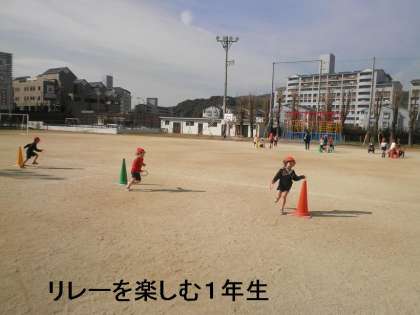 体育でリレーがはじまりました。なわとびと交互にがんばっています。