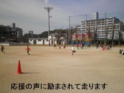 どのチームもすごく大きな声で声援を送っています。それに応えて,一生懸命手を抜かずに力いっぱいで走っていました。