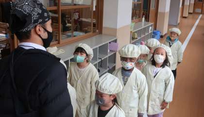 給食の準備もだんだん早くなってきた1年生。