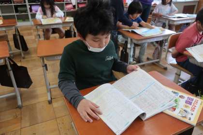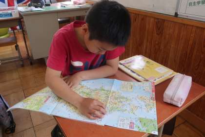 社会科の学習です。今日は、地図帳「さくいん」を使って、自分の住んでいるまちについて調べました。