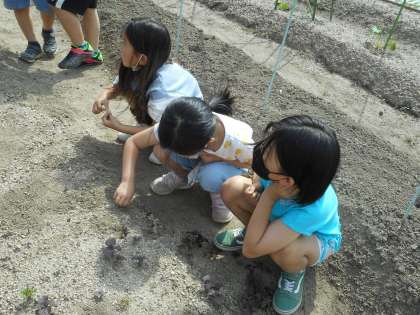 ホウセンカとオクラの種まきをしました。それぞれの種まき方法の違いを確認しながら、みんな丁寧に種まきをしていました。