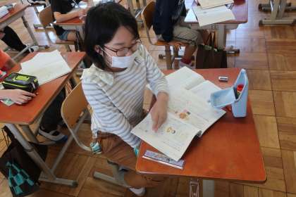 国語科の学習です。今日は、メモの取り方の工夫について、みんなで話し合いました。メモは完結に、大事な部分を中心に書くことの大切さに気付いたようです。