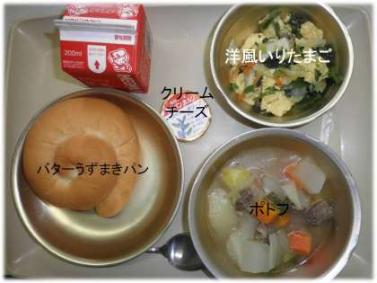 「バターうずまきパン」「ポトフ」「洋風入り卵」「クリームチーズ」