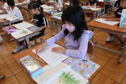 毎時間、ワークシートを活用してていねいにふり返りを行うことで、できたことやがんばったことを確かめています。