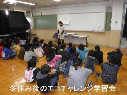 昨秋から取り組み,冬休み後(今日)取組結果を「エコライフ診断書」で振り返り,今後の取組をワークショップ形式で実践発表をしました。