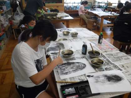 墨の濃淡、筆圧などを変化させて思い思いに表現を楽しんでいました。