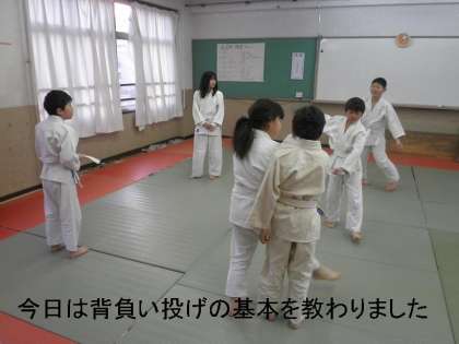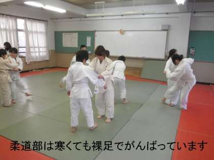 柔道部は,暖房のない教室(道場)での練習です。当然のことですが裸足になっての活動ですので,見ている方が寒そうでしたが,子どもたちは元気いっぱいで,だれも寒さを感じず,一生懸命取り組んでいました。