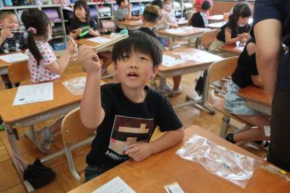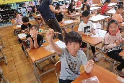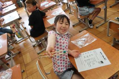 ステップ1 えんぴつの持ち方ではしを1本持つ。