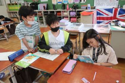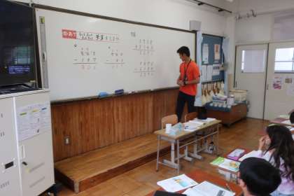 算数科「たし算とひき算の筆算」の学習も最終です。今日は、自分で作ったオリジナル問題の出題バトル!教科書に載っている『4桁+4桁』の桁数をこえる問題も多数出題!グループで問題を出し合い、みんな果敢にチャレンジしていました。