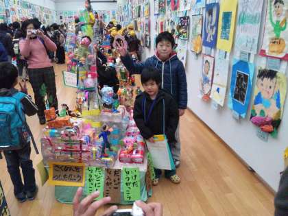 先日,伏見東支部の池田小・池田東小・醍醐小・醍醐西小・北醍醐小の子どもたちでで作った共同作品が展示してありました。
