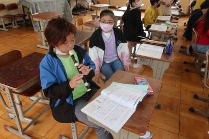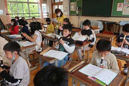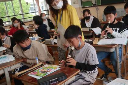 音楽科の学習です。今日は「レッツゴーソーレ」のリコーダーテスト。