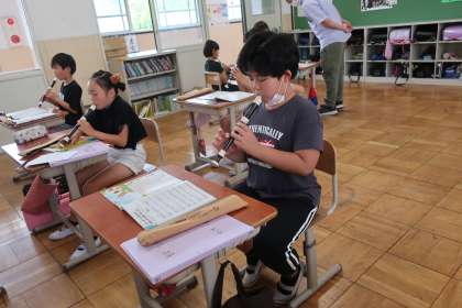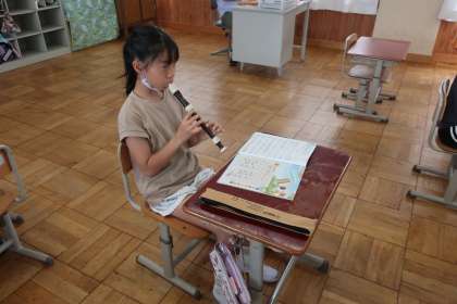 曲の感じをつかんで歌ったり、リコーダーの演奏をしたりして、楽しんで活動していました。